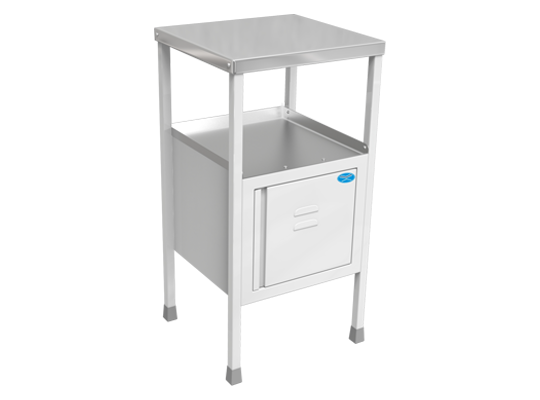 Patient bedside locker designed for convenient storage of personal belongings in hospital wards.